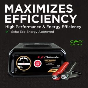 The Schumacher SC1339 Battery Charger and Maintainer is a great option for most general charging applications. The microprocessor automatically adjusts the amperage rate, with multi-stage charging and float mode monitoring for optimum charging and maintaining to extend battery life. Includes simple start/stop interface, LED light indicators that track the charge status, and reverse hook-up protection which prevents the charger from operating if the clamps are reversed. Schu Eco Energy meets the highest industry standards. Compatible with standard and AGM batteries.
