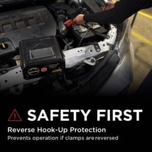 – SAFE & RELIABLE: Reverse hook-up protection prevents the charger from operating if clamps are reversed