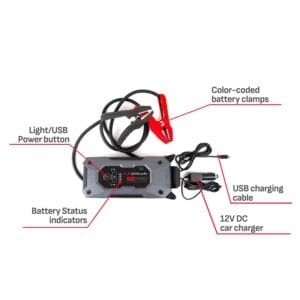 – Rugged Design With a durable case and heavy-duty clamps, this jump starter is designed to stand up to frequent use and tough conditions.